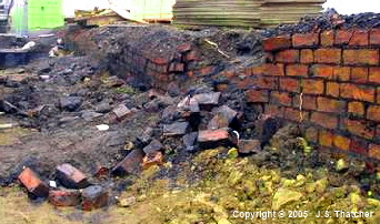 In November 2005, ground clearance work on the site of the colliery car-park exposed a section of old brick wall in which a length about 4yd long had sagged by about 12in at some time in the past. The sagging was probably due to collapes into an underlying fissure although this could not be seen at the time.